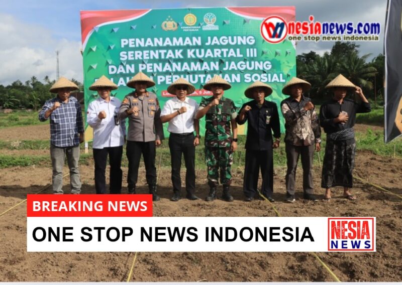 NESIANEWS.COM – Polres Lombok Tengah mengambil peran aktif dalam mendukung program swasembada pangan nasional dengan melakukan penanaman jagung serentak se-Indonesia Kuartal III yang berlokasi di Dusun Muhajirin, Desa Barabali, Kecamatan Batukliang, Rabu (9/7).