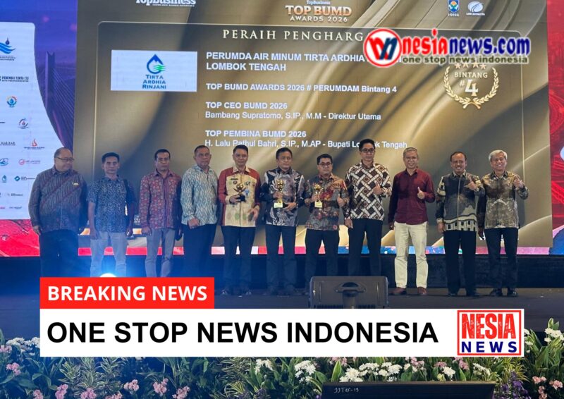 NESIANEWS.COM – Perumda Air Minum Tirta Ardhia Rinjani Kabupaten Lombok Tengah merupakan satu-satunya PDAM di NTB berhasil meraih penghargaan TOP BUMD Bintang 4 pada ajang TOP BUMD Awards 2026 yang diselenggarakan oleh Majalah Top Business bekerja sama dengan MSI Group. Kegiatan tersebut berlangsung di Hotel Raffles, Kuningan, Jakarta Pusat, Senin (13/4/2026).